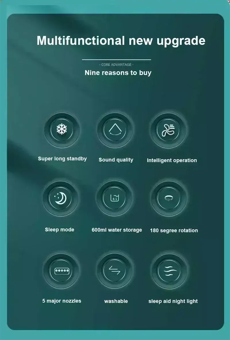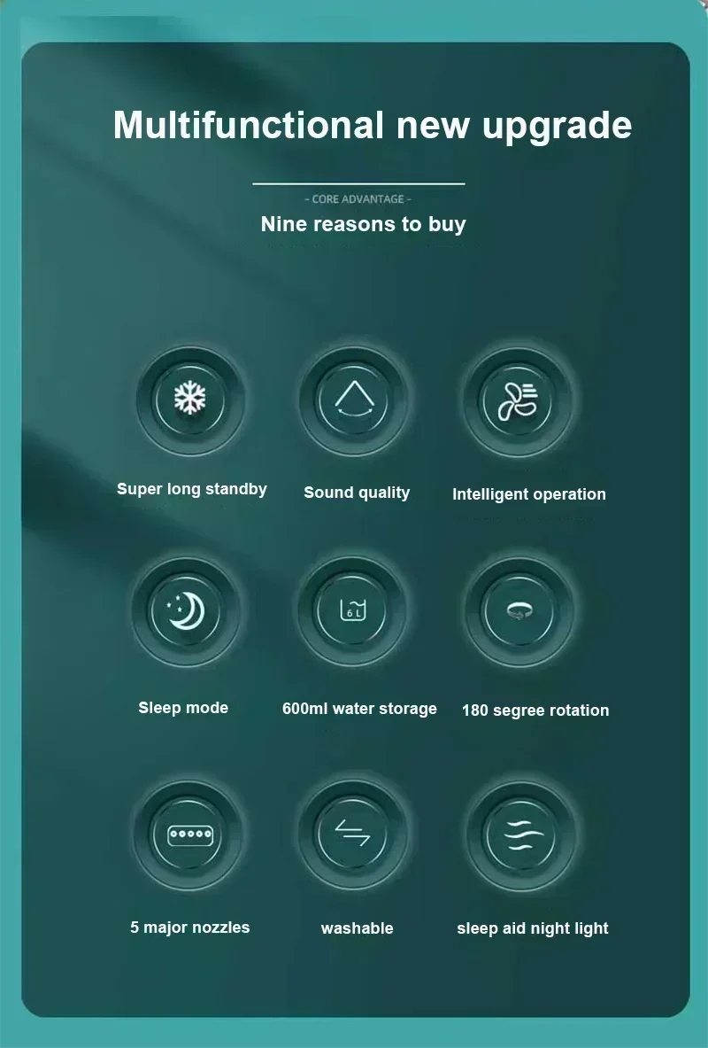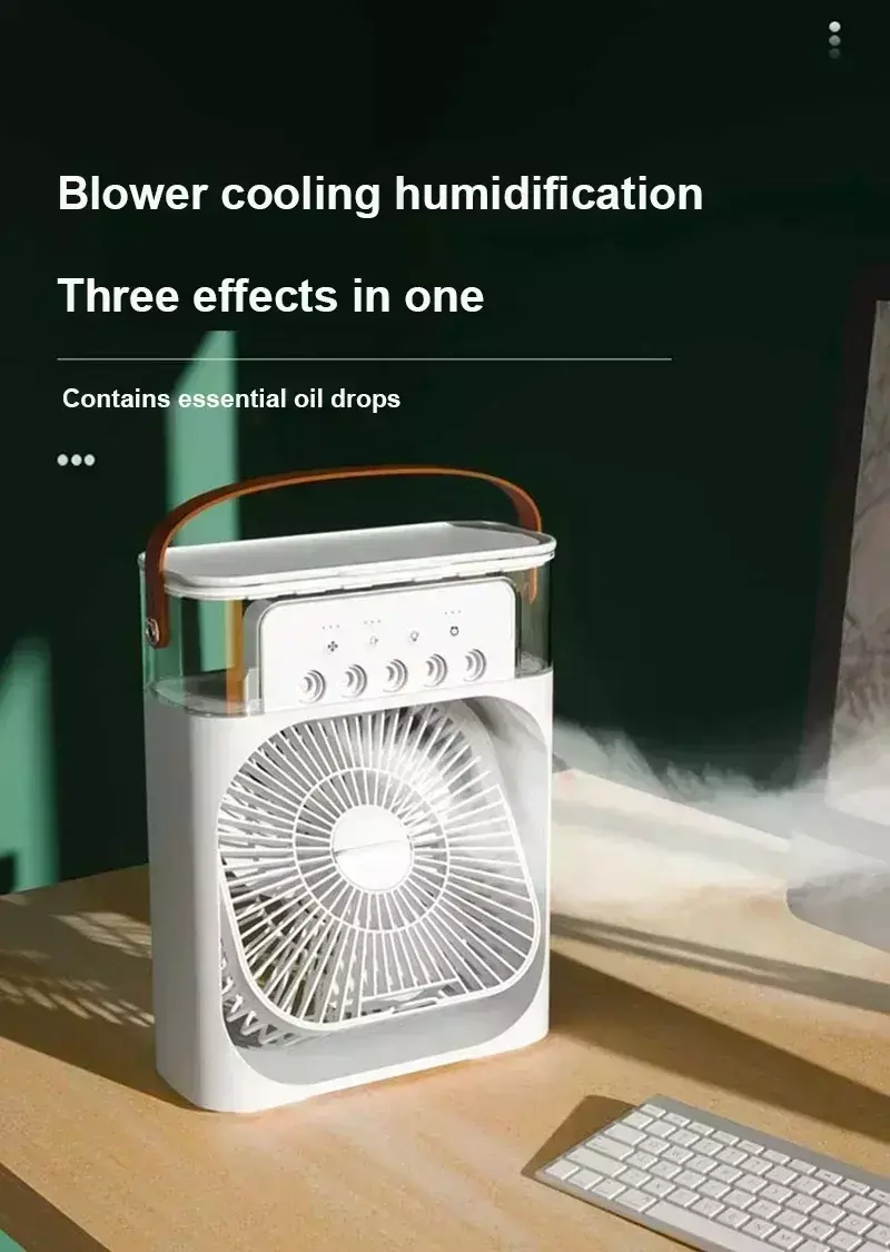 Venda quente!Casa - Ar condicionado com ventilador portátil: design 3 em 1 com umidificador USB luz noturna LED elétrica